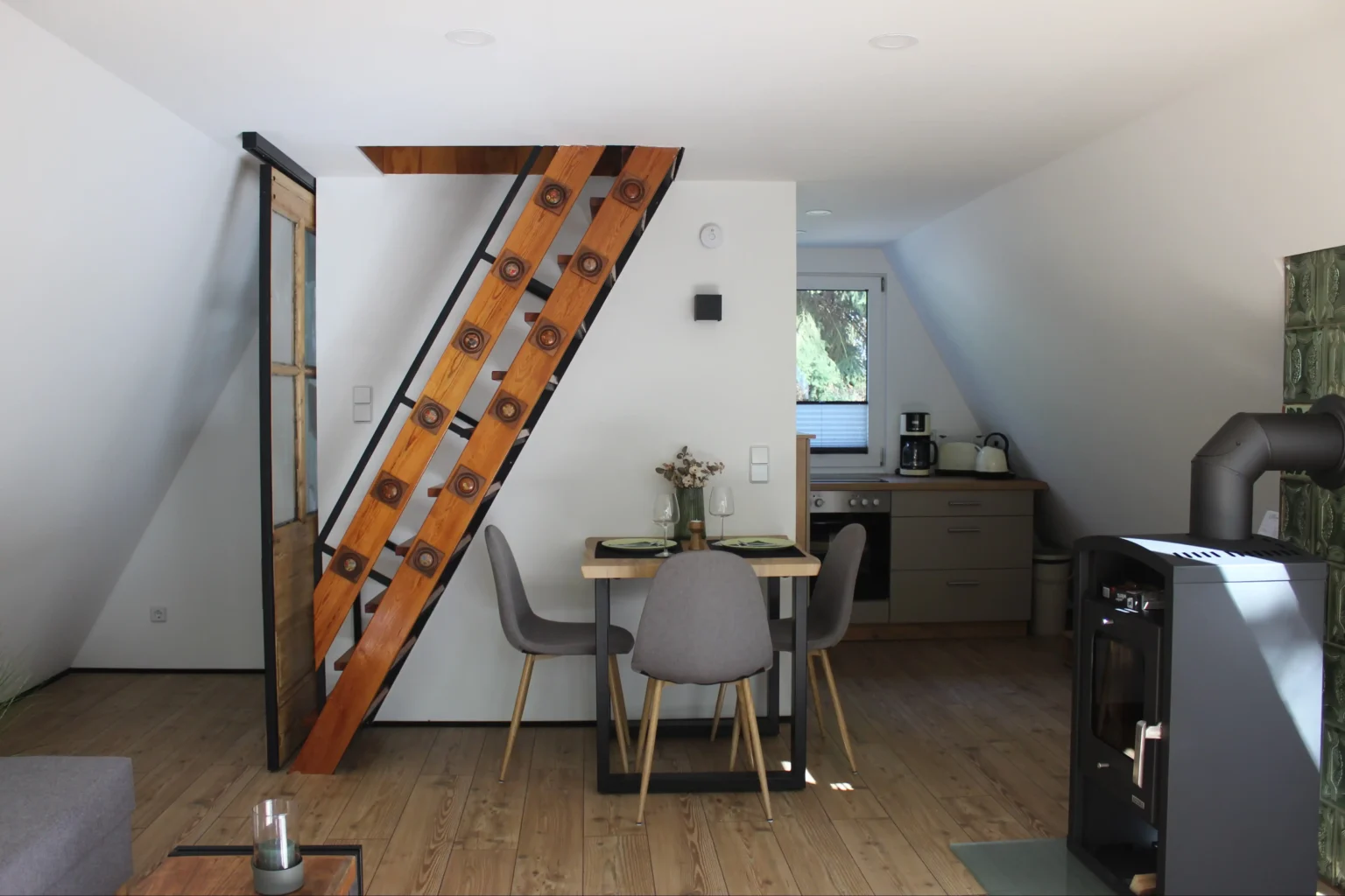 Unsere liebevoll eingerichtete Jagdhütte bietet nicht nur einen Kamin, sondern auch eine private Sauna für entspannte Stunden. Die 2025 neu installierte Küche ist modern und vollständig ausgestattet und lässt keine Wünsche offen. Der Schlafbereich befindet sich im oberen Stockwerk und bietet Ruhe und Komfort. Zur Unterhaltung stehen Bücher, ein Fernseher sowie verschiedene Spiele zur Verfügung.