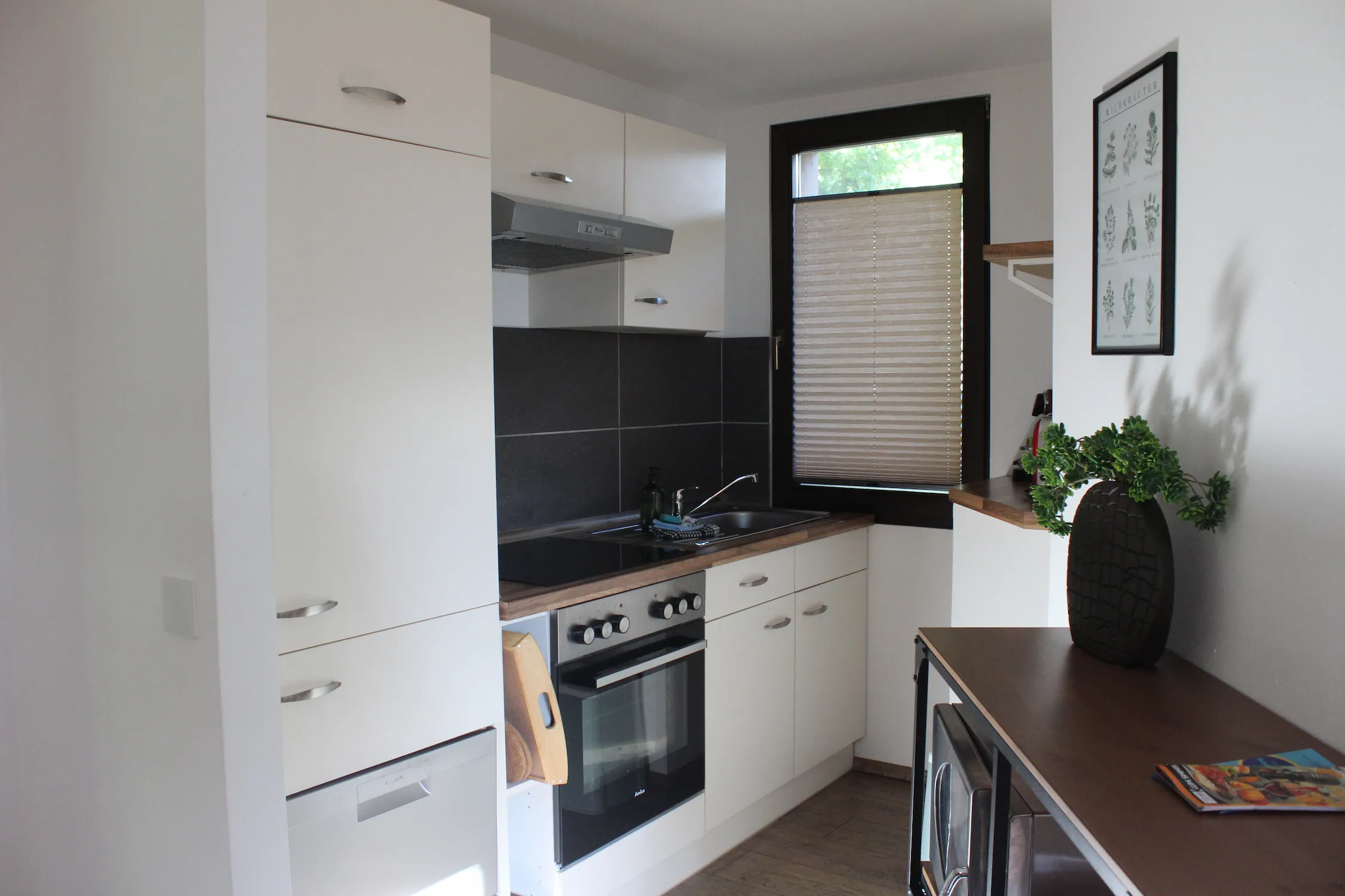 Die Ausstattung umfässt eine Spülmaschine, Kaffeemaschine, Wasserkocher, Toaster und Mikrowelle.